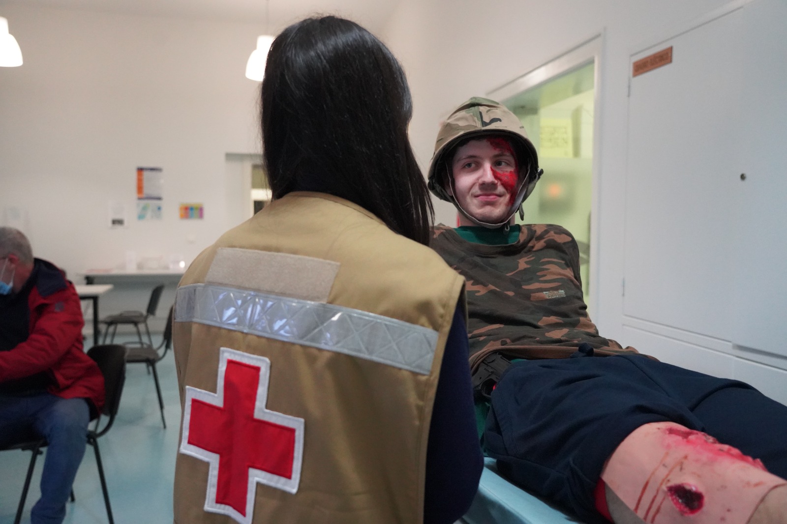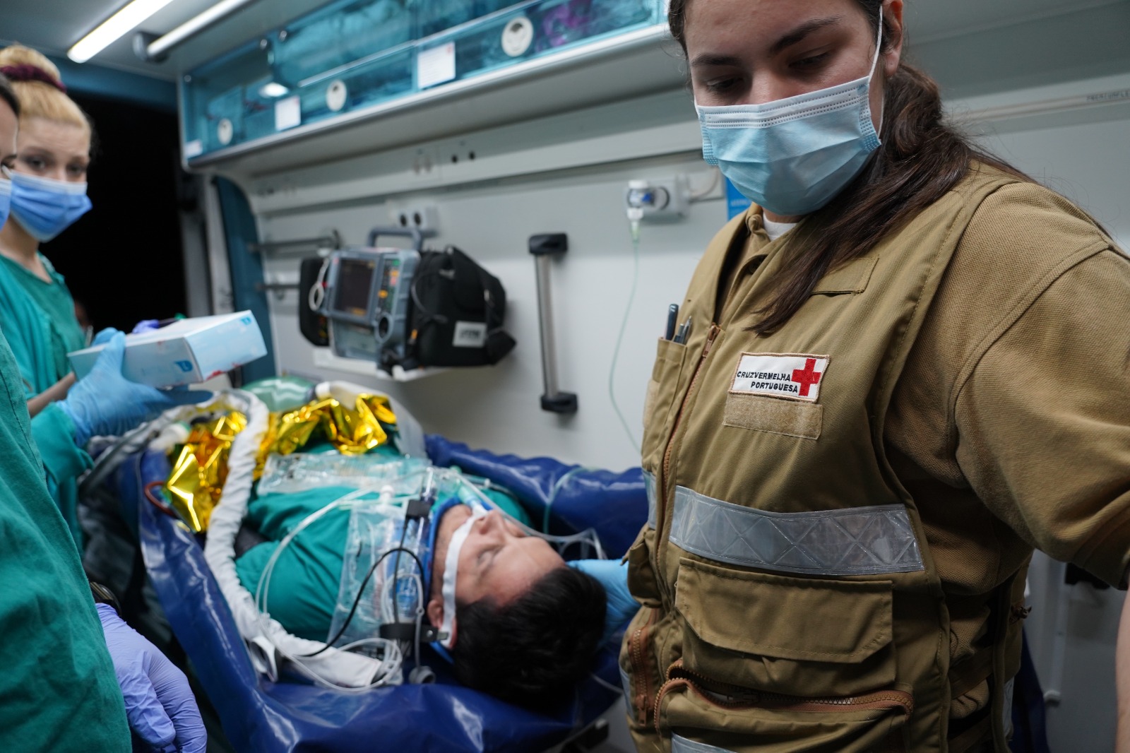 A participação da Cruz Vermelha passou pelo apoio à caracterização das vítimas e disponibilidade de ambulâncias de socorro para a simulação do cenário de conflito.